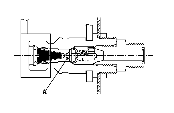4. If you detect a leak at the fuel receptacle valve (A) after fuel filling, blow fuel on the valve from the nozzle to remove the contamination.