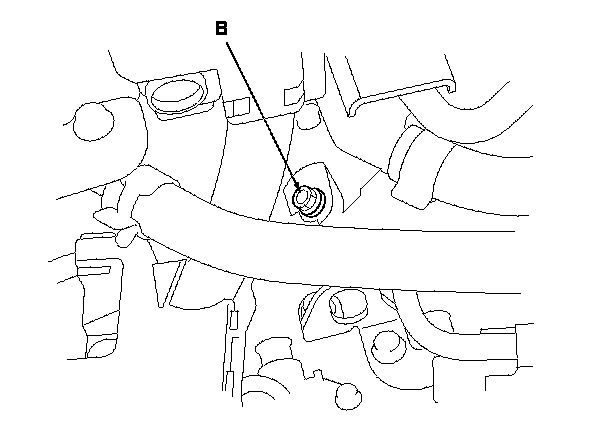 16. Measure the 1st clutch pressure at the 1st clutch pressure inspection port (B) while holding the engine speed at 2,000 rpm.
