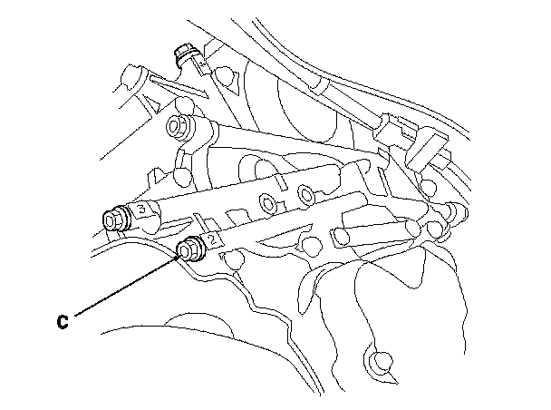14. Connect the A/T oil pressure gauge to the 2nd clutch pressure inspection port (C).