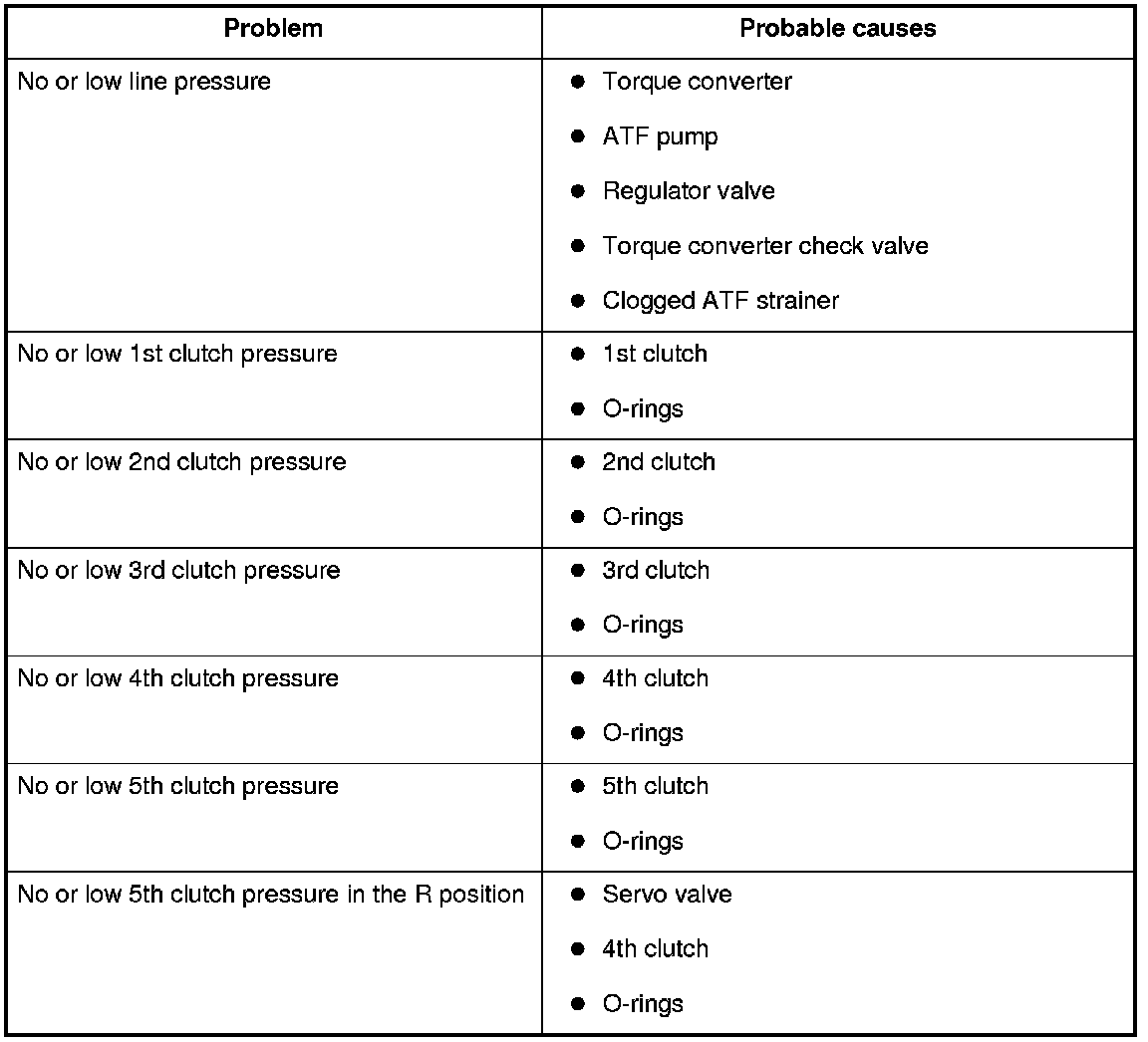 31. If the pressures are out of the service limit, problems and probable causes are listed in the table.