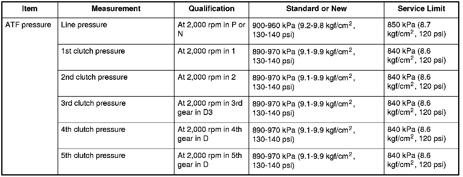 ATF pressure Specifications
