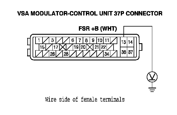 5. Measure the voltage between VSA modulator-control unit 37P connector terminal No. 13 and body ground.