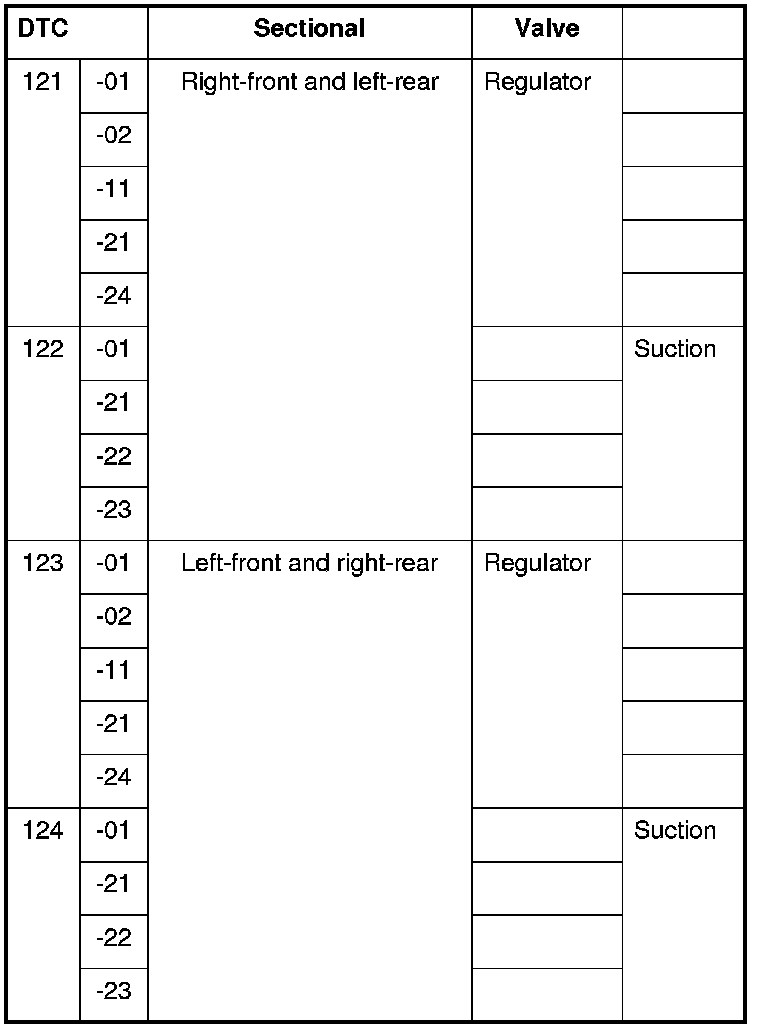 VSA DTC Troubleshooting: 121-xx, 122-xx, 123-xx, 124-xx
