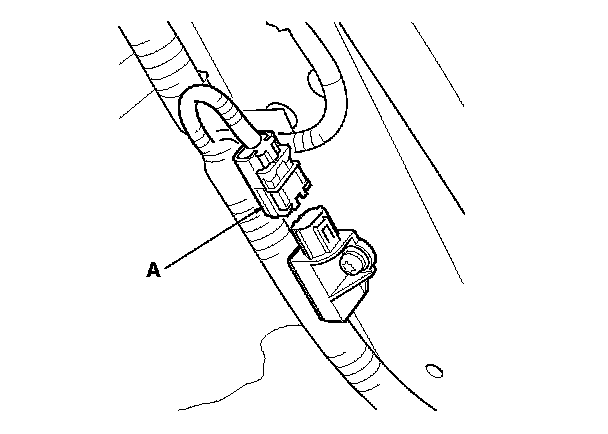 9. Disconnect the floor wire harness 4P connector (A) from the rear safing sensor.