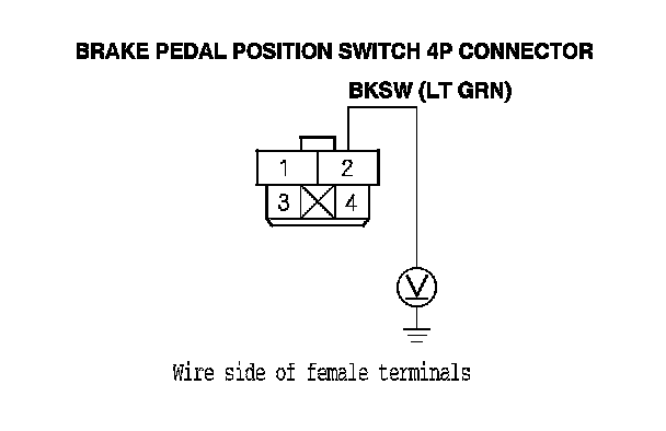 9. Measure the voltage between brake pedal position switch 4P connector terminal No. 2 and body ground.