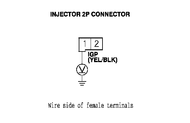 35. Measure the voltage between injector 2P connector terminal No. 1 and body ground.