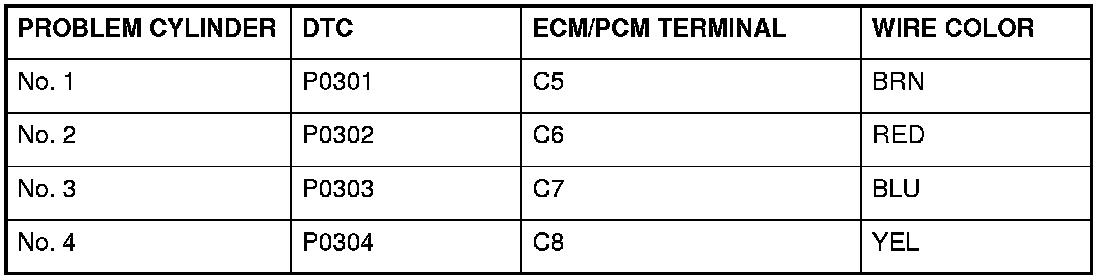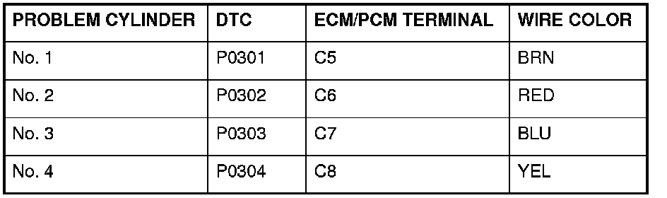 DTC Troubleshooting: P0301, P0302, P0303, P0304