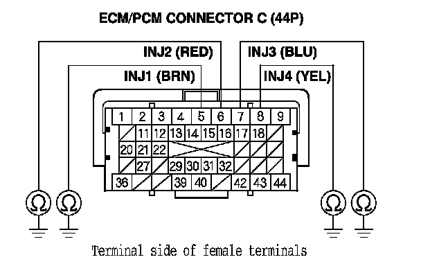 37. Check for continuity between body ground and the appropriate ECM/PCM connector terminal of the problem cylinder (see table).