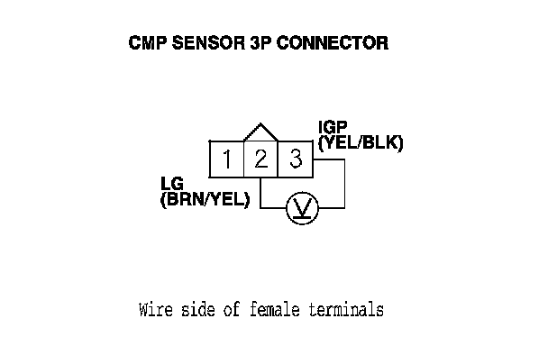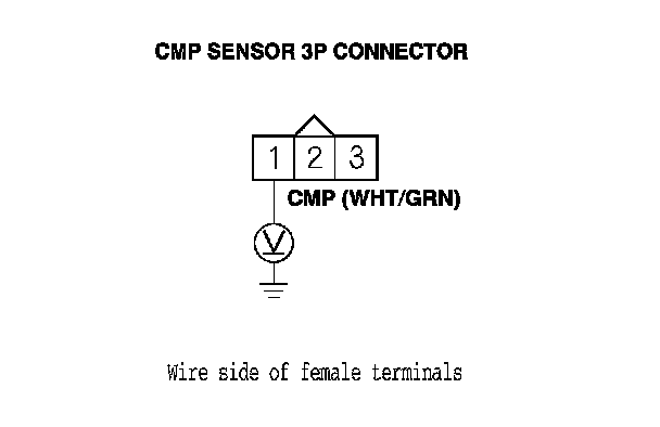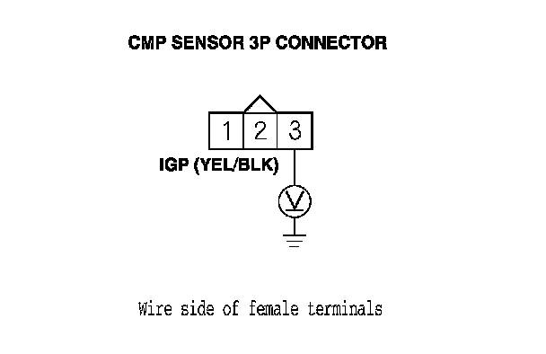 10. Measure the voltage between CMP sensor 3P connector terminals No. 2 and No. 3.