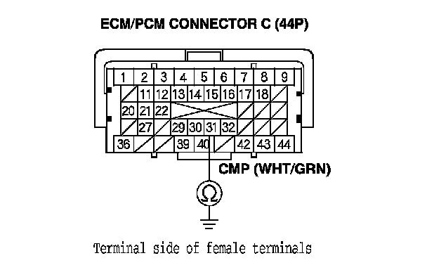 15. Check for continuity between CMP sensor 3P connector terminal No. 1 and ECM/PCM connector terminal C31.