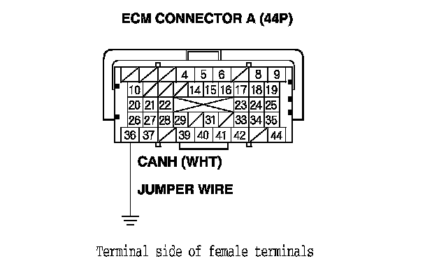 10. Connect ECM connector terminal A36 to body ground with a jumper wire.