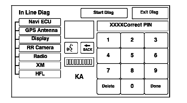 When a navigation unit is powered up for the first time at the factory or after replacement with a new or remanufactured navigation unit, the factory diagnosis screen (In Line Diag) appears. Normally the factory does the steps necessary to verify proper operation and terminate the factory diagnostic.