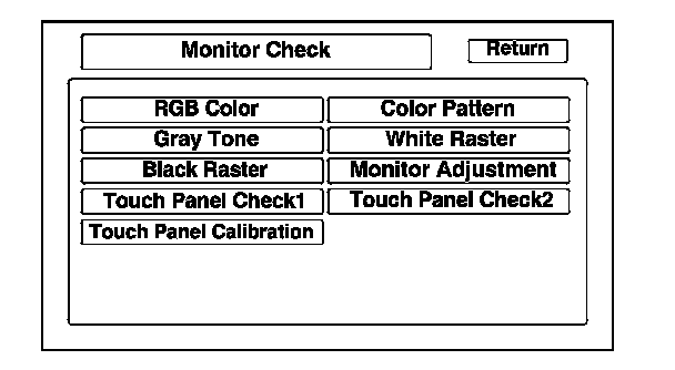 The display screen uses a touch sensitive membrane. This means that every location of the entire surface of the display is touch sensitive. This diagnostic allows alignment of these touch locations with the location of the buttons images on the screen.
