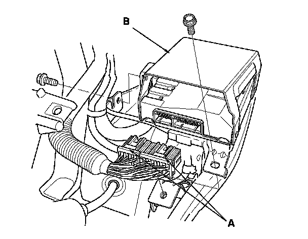 2. Remove the stereo amplifier connectors (A) from the stereo amplifier (B).