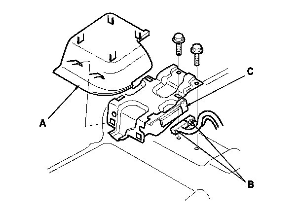 3. Remove the bolts and stereo amplifier (C).