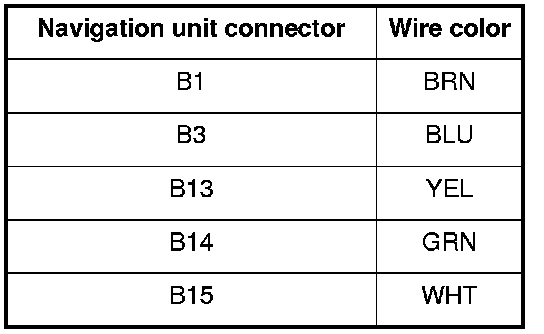 11. Check for continuity between navigation unit connector B (24P) according to the table.