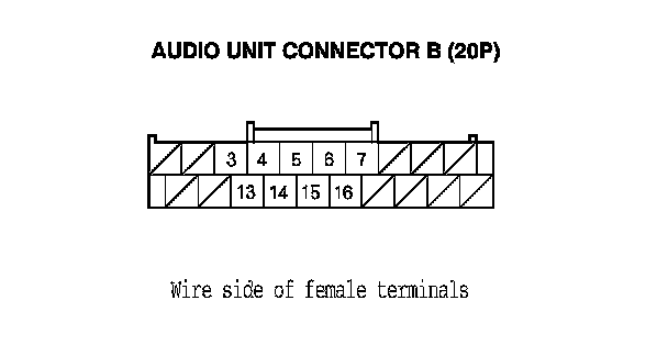 16. Check for continuity between audio unit connector B (20P) according to the table.
