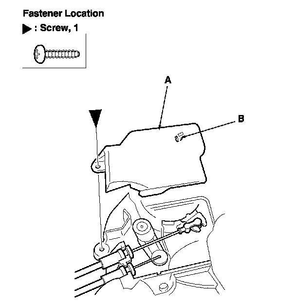 9. Remove the screw, then remove the latch protector (A) by releasing the hook (B).