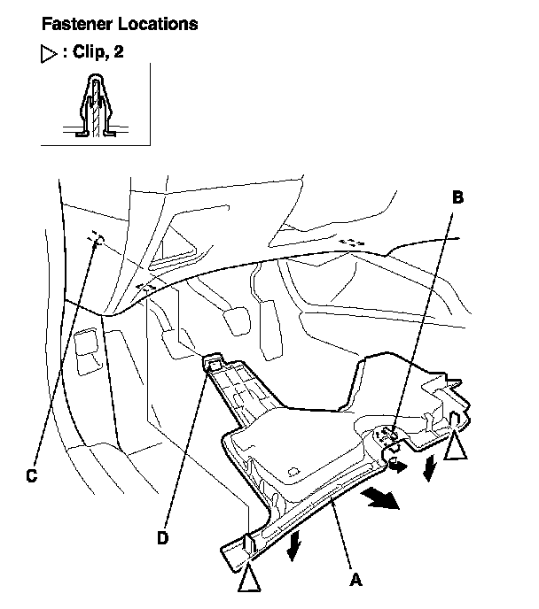 -3 Pull the cover away to release the pin (C) from the holder (D).