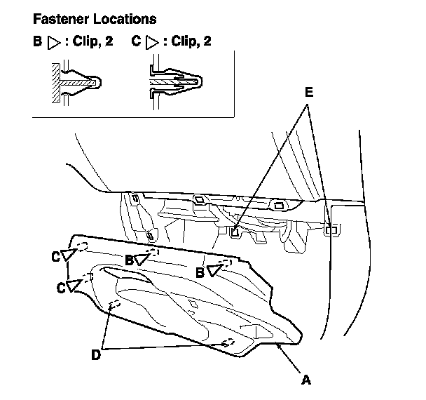 2. Install the undercover in the reverse order of removal, and if the clips are damaged or stress-whitened, replace them with new ones.