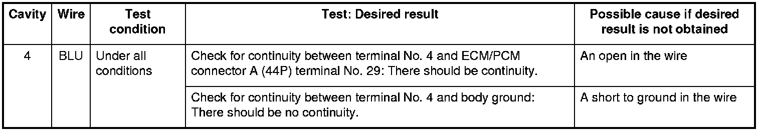 5. Reconnect the connector to the control unit, and do these input tests at the following connector.