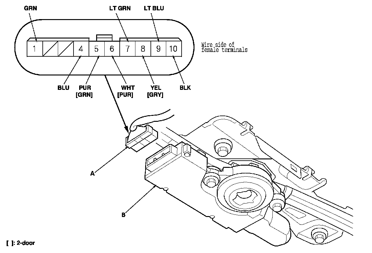 3. Disconnect the 10P connector (A) from the moonroof control unit (B).