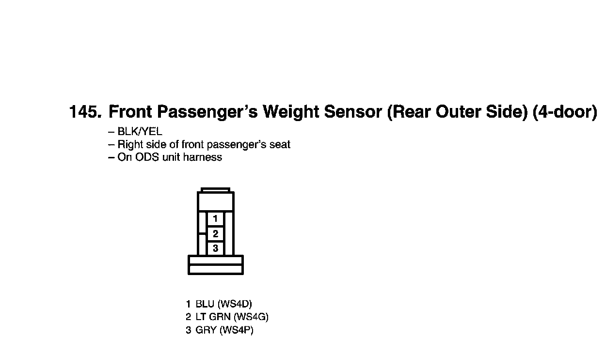 View 145 Front Passenger's (Rear Outer Side) Weight Sensor Connector View (4-Door)