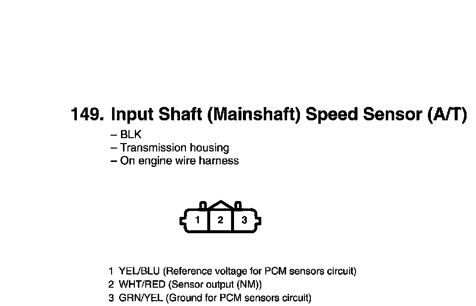 View 149 Input Shaft (Mainshaft) Speed Sensor Connector View (A/T)