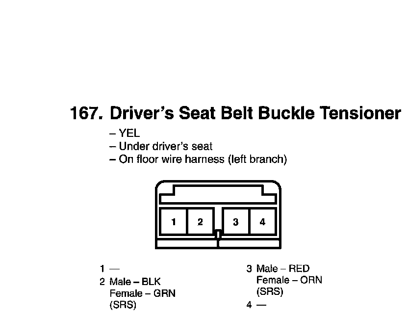 View 167 Driver's Seat Belt Buckle Tensioner Connector View