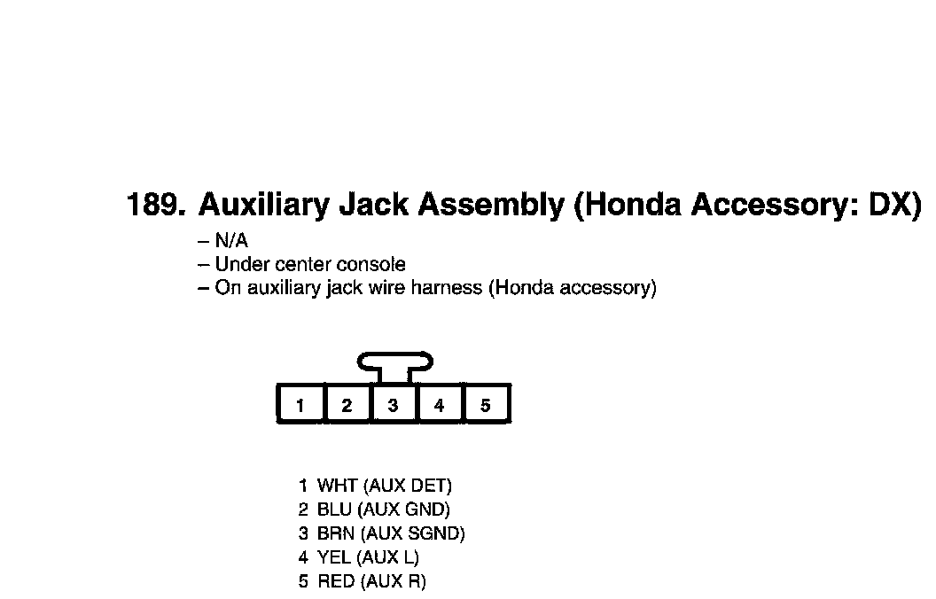View 189 Auxiliary Jack Assembly Connector View (Honda Accessory)