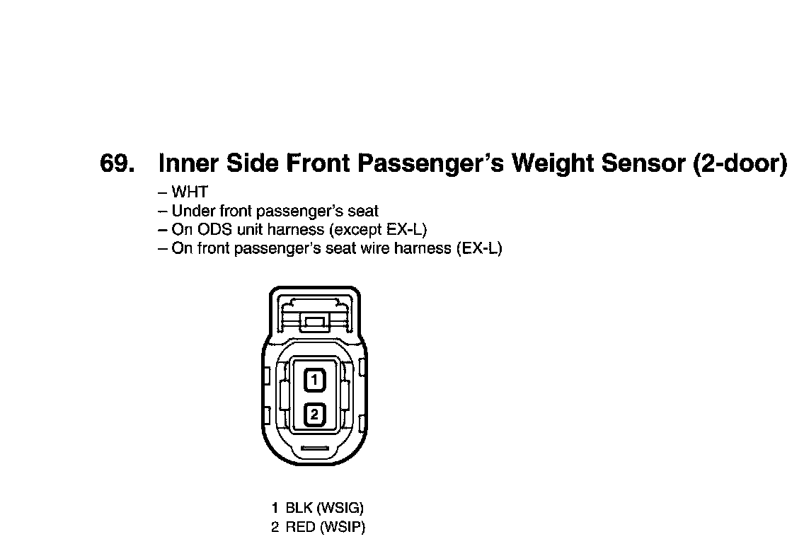View 69 Inner Side Front Passenger's Weight Sensor Connector View (2-Door)