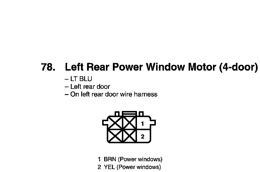 View 78 Left Rear Power Window Motor Connector View (4-Door)