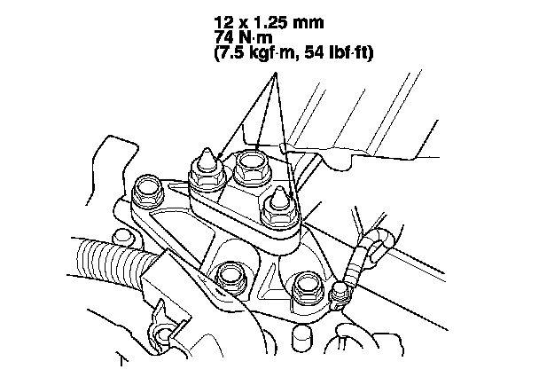 14. Tighten the transmission mounting bolt and nuts.