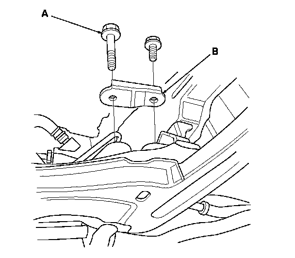 33. HPS model: Remove the steering gearbox mounting bolt (A), then remove the steering gearbox stiffener (B).