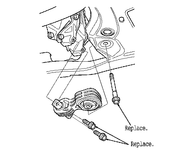 59. Remove the side engine mount bracket mounting bolt and nut.