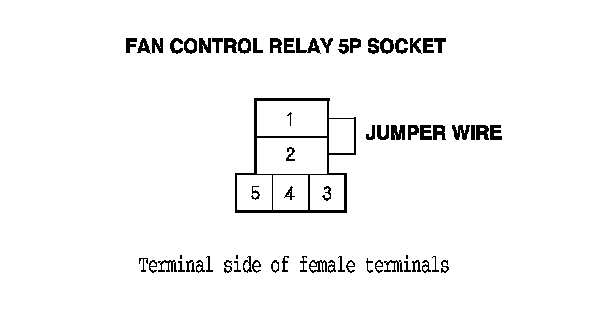 4. Connect fan control relay 5P socket terminals No. 1 and No. 2 with a jumper wire.
