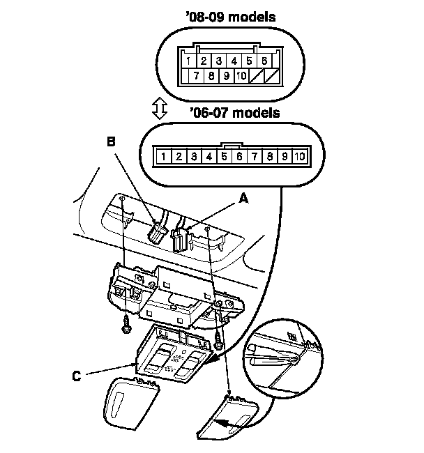 3. Remove the moonroof switch (C).
