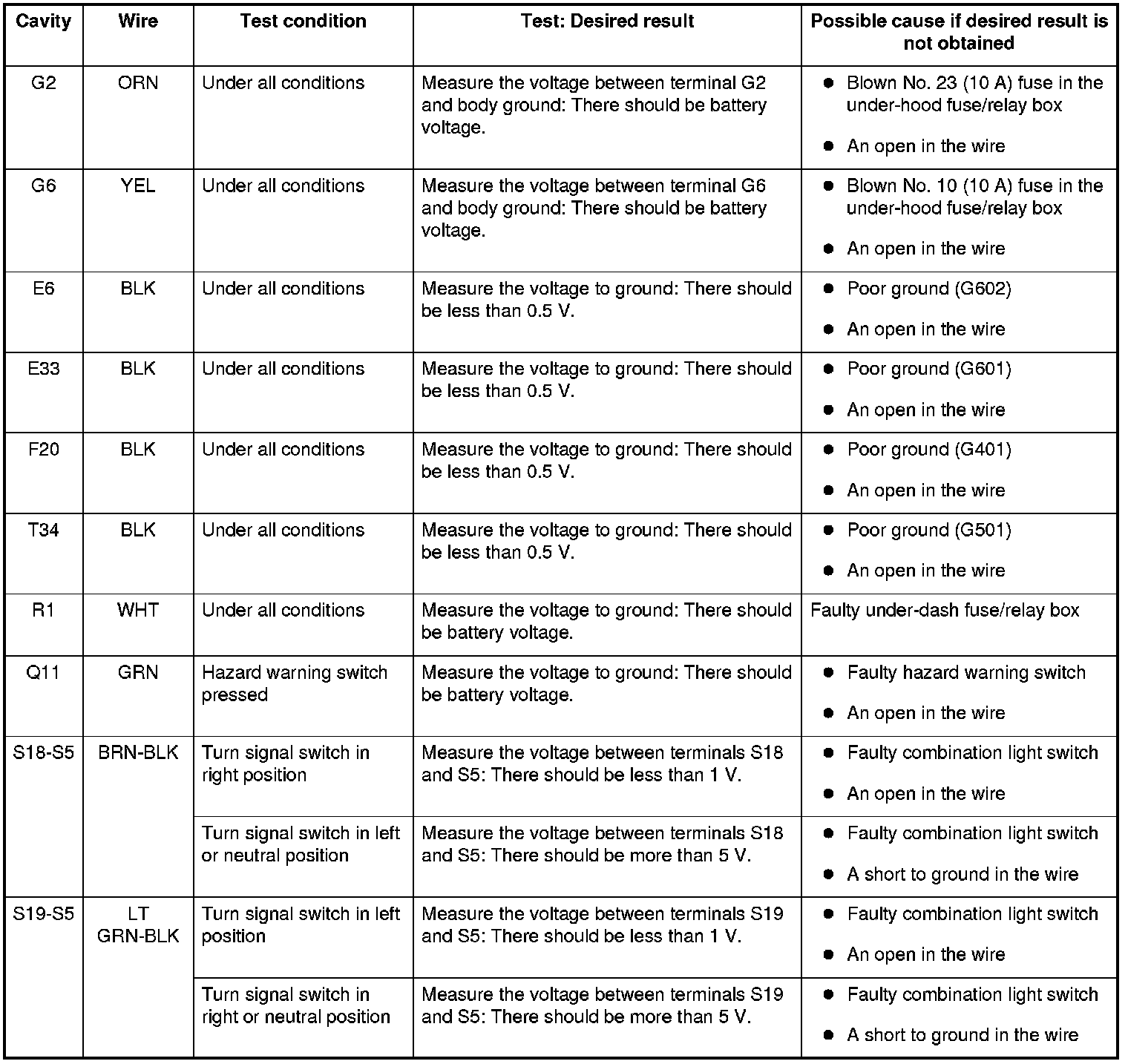 1. Before troubleshooting the turn signal/hazard warning lights system, troubleshoot the system using B-CAN System Diagnosis Test Mode A. Troubleshooting - B-CAN System Diagnosis Test Mode A