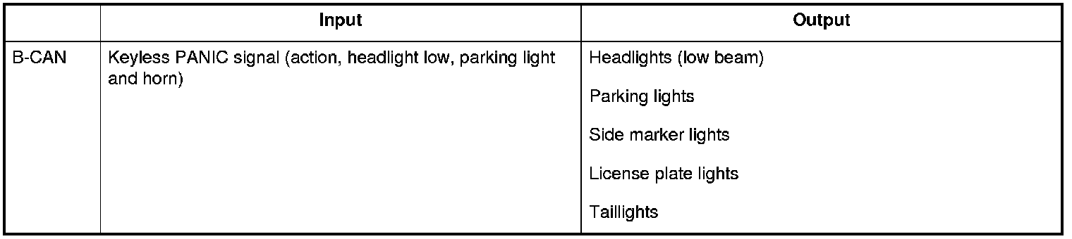 The MICU controls the keyless PANIC function based upon B-CAN signals.