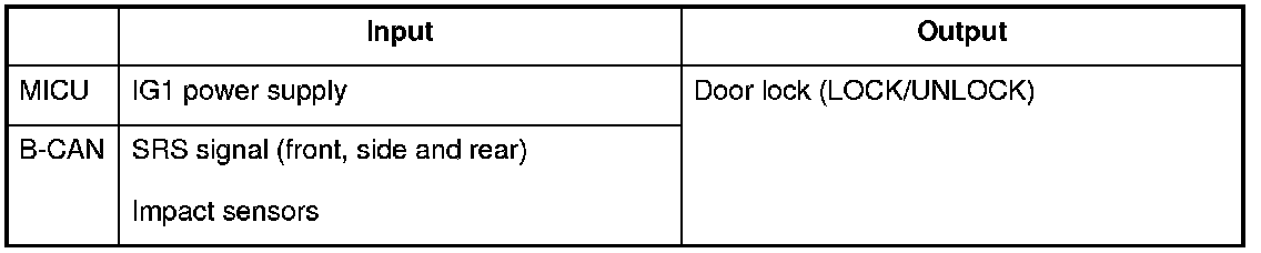 The MICU controls the door lock actuators based upon IG1 and B-CAN signals.