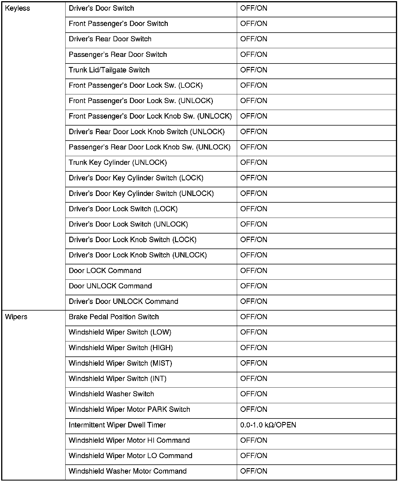 Power Door Locks (Normally LOCK/UNLOCK Operation)