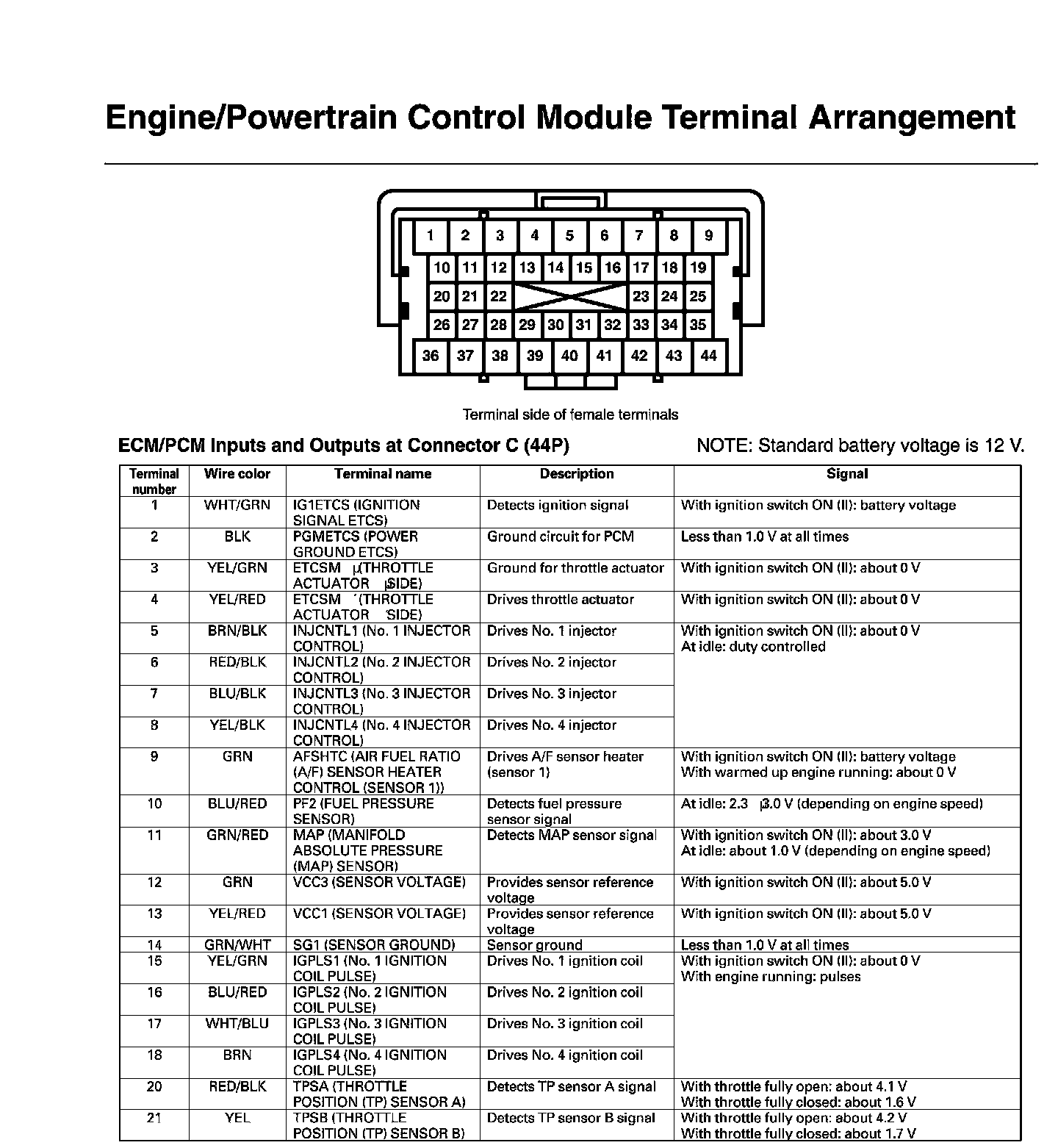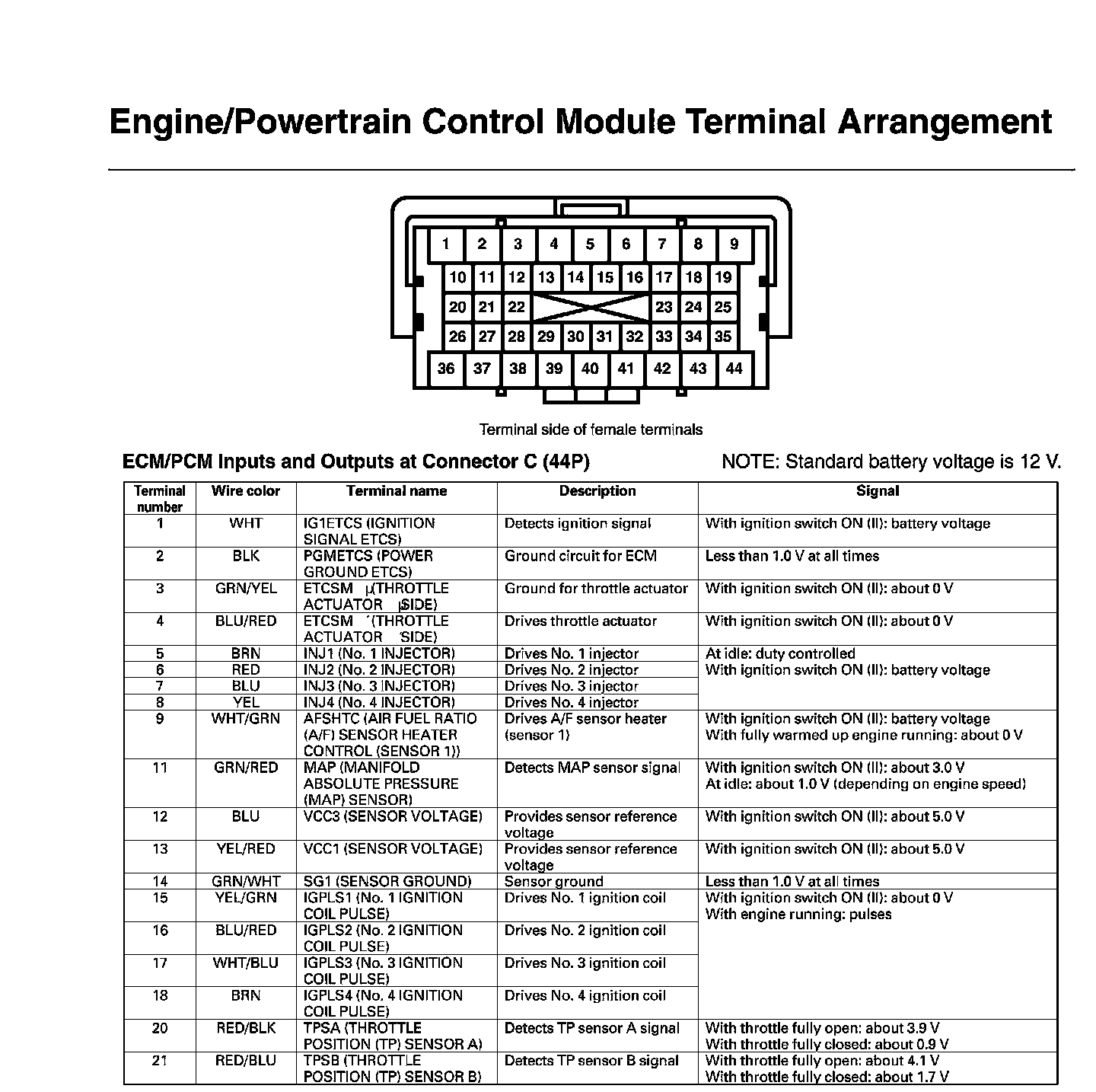 ECM/PCM Inputs And Outputs At Connector C