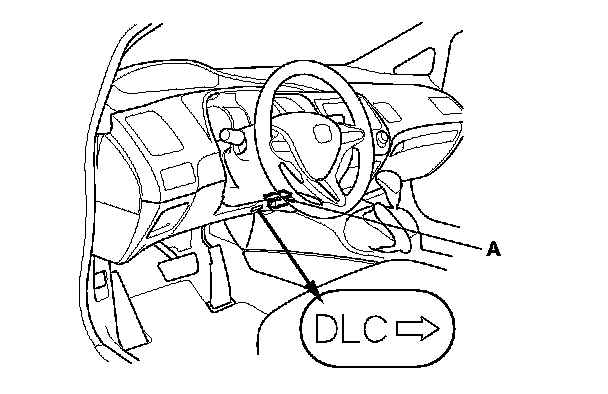 2. Connect the HDS to the data link connector (DLC) (A) located under the driver's side of the dashboard.