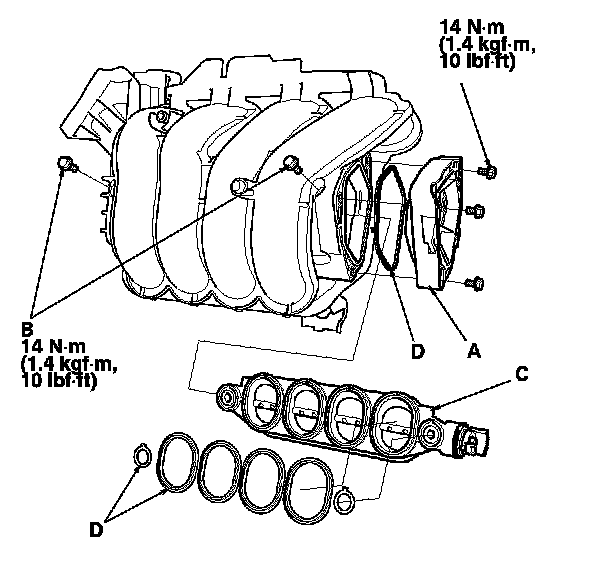 4. Install the parts in the reverse order of removal with new O-rings (D).