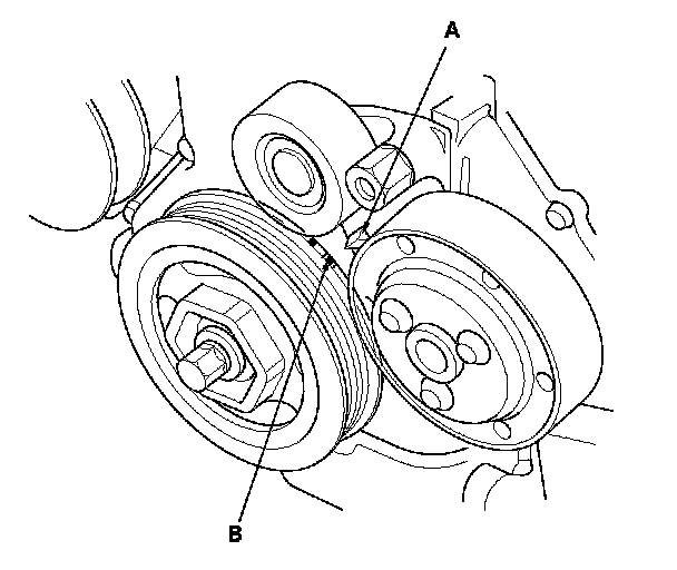 9. Aim the light toward the pointer (A) on the cam chain case. Check the ignition timing under a no load condition (headlights, blower fan, rear window defogger, and air conditioner are turned off).