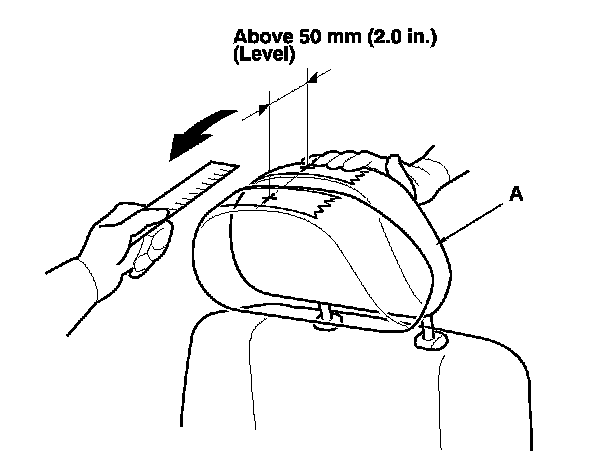 6. Push the head restraint (A) forward, and measure the level amount of the head restraint movement. The head restraint should move more than 50 mm (2.0 in.) without resistance. If it is less than 50 mm (2.0 in.), or the head restraint does not move smoothly, replace the seat frame assembly:
