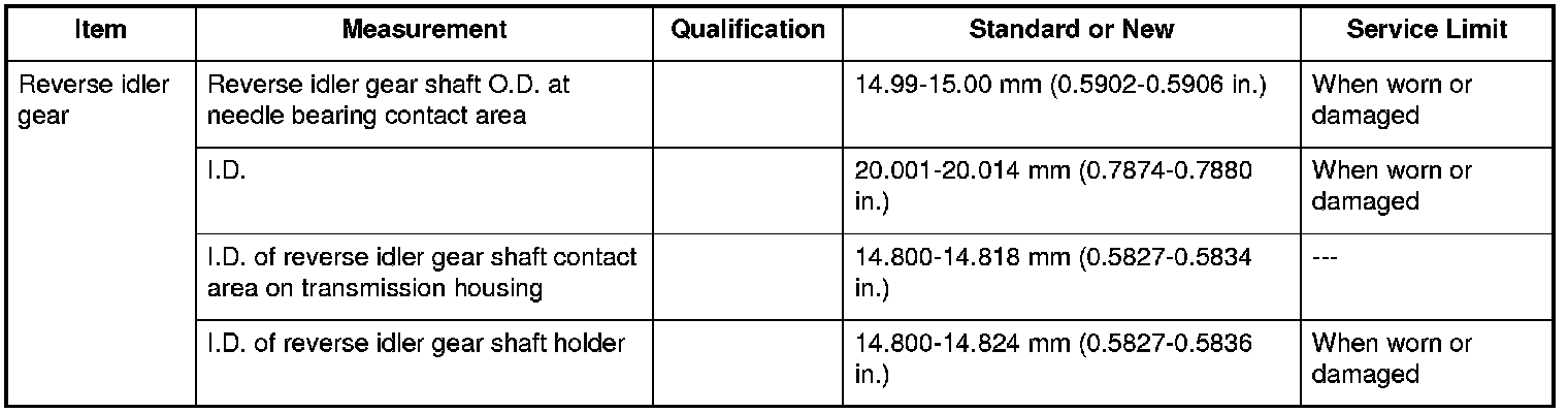Reverse Idler Gear Specifications (A/T)
