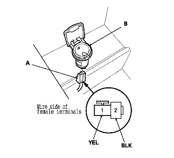 2. Disconnect the 2P connector (A) from the console accessory power socket (B).