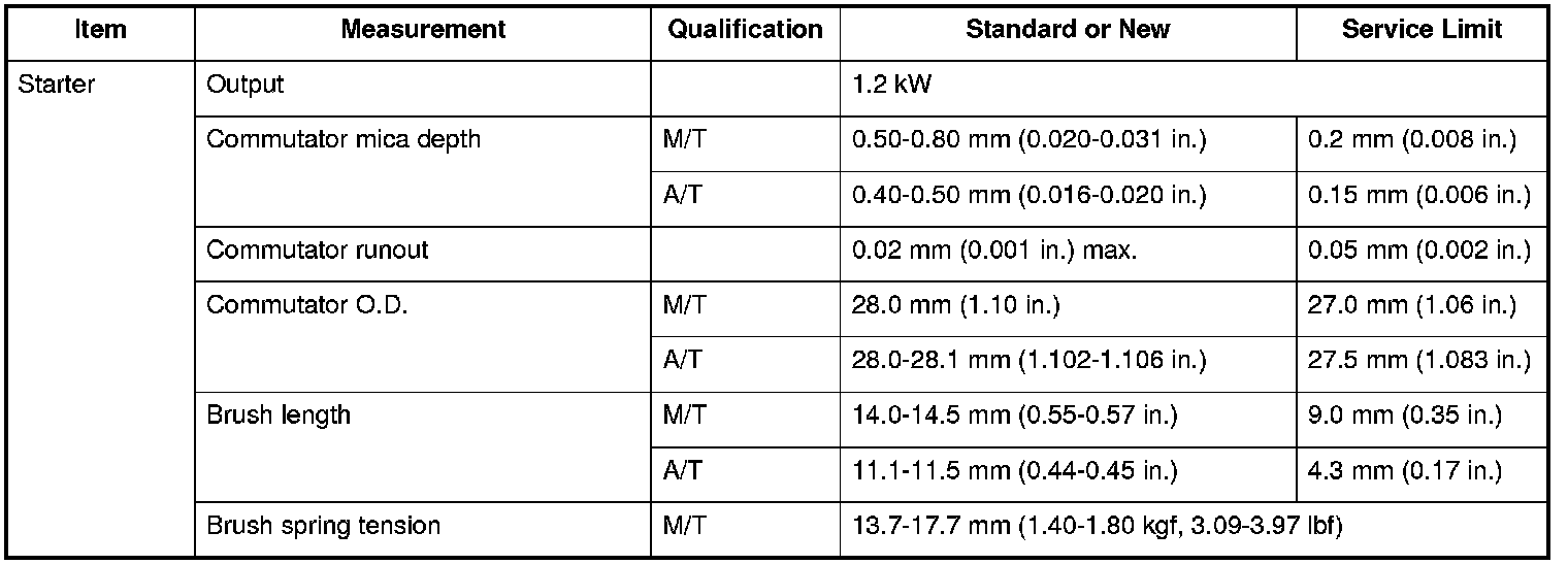 Starting System: Specifications