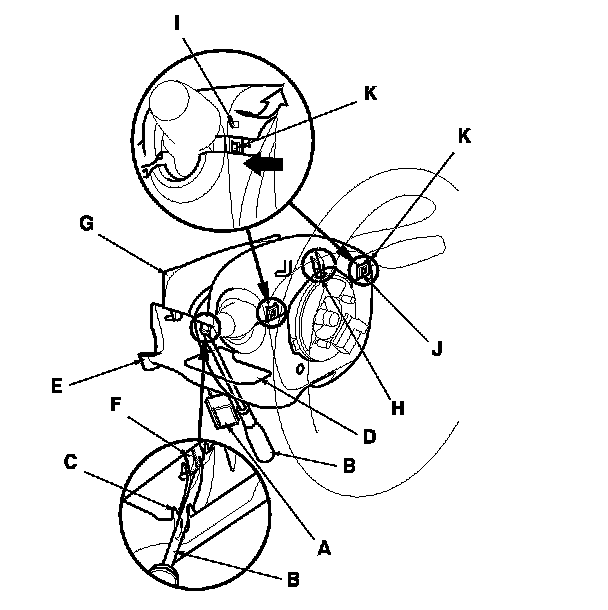 Carefully release the pawls, note the hooks (K) may break when the upper column cover is pulled up too hard.